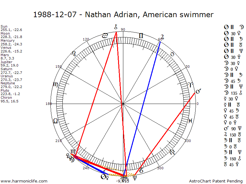 MOON (Fall) -135 degrees CHIRON with an error of 2.18 degrees. Aspect strength = 45.49% ** Turbulent Aspect ** This signifies a strong desire for marriage and children, someone who is highly intuitive and resourceful. It is a female Romance Aspect, and if the native is a woman, all she thinks about is her Prince Charming or meeting one. She feels completely unfulfilled without one in her life.