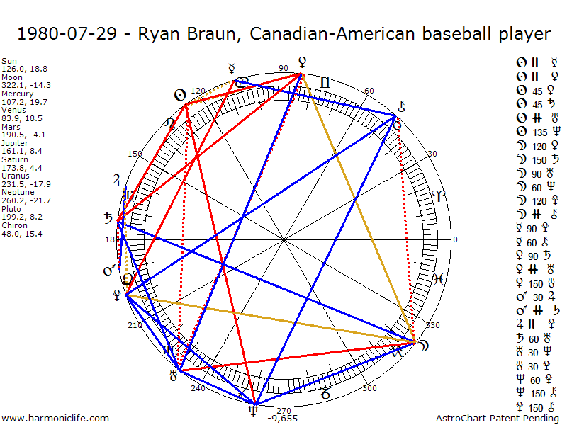 PLUTO Sesquiquadrate-150 degrees CHIRON with an error of 1.24 degrees. Aspect strength = 69.07% This is a Super Aspect. Interpretations: noteworthy success, a highly profitable career, power from marriage or the family, and a person of power and vision.