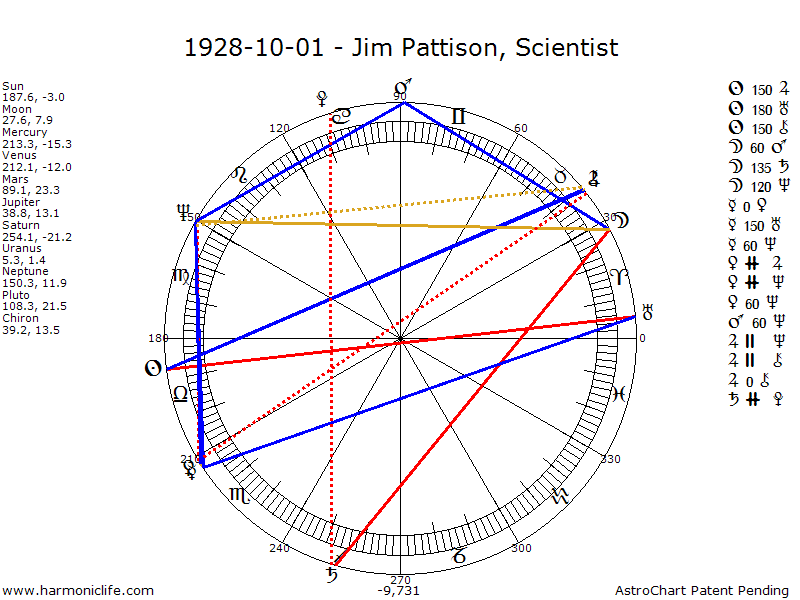 SUN (Fall) Sesquiquadrate-150 degrees CHIRON with an error of 1.6 degrees. Aspect strength = 59.97% This is one of the most powerful aspects that is not a Super Aspect. It helps the native to be noteworthy and or charismatic. If the native also has a Super Aspect formed by Chiron, then he or she can have a hypnotic or mesmerizing influence on most of us. This is also a female Romance Aspect where the native (person born with the aspect), if female, has an unusually intense desire for marriage and children. Such women often marry and have children when they are very young.