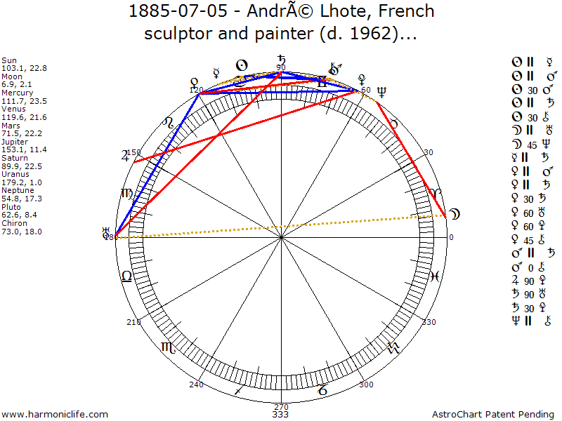 MARS Conjunct-0 degrees CHIRON with an error of 1.57 degrees. Aspect strength = 60.82% One of the Male Sexual Aspects, it creates the ultimate high energy level, generates more pure energy than any other aspect, and rates as a Super Sports Champion Aspect (a term from Astrology Really Works!). But the Chiron -Mars aspect does not help coordination in the way the Venus-Mars aspect does. The native needs aspects that help coordination in order to most beneficially harness the energy this aspect provides. If the aspect in not well used and controlled through moral teachings, there can be constant moral slippage toward excessive aggressiveness, and even belligerency.