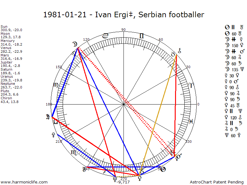 VENUS Trine-120 degrees CHIRON with an error of 1.23 degrees.