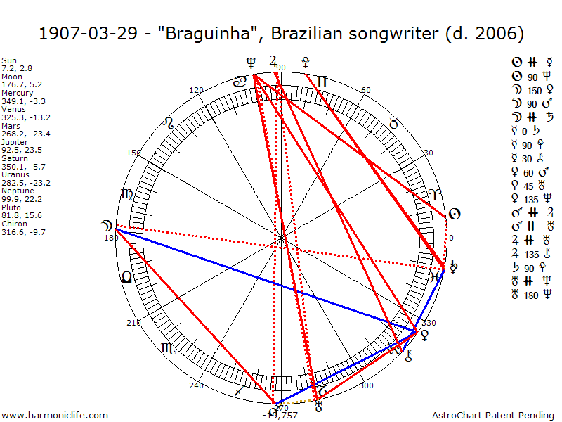 JUPITER -135 degrees CHIRON with an error of .91 degrees.