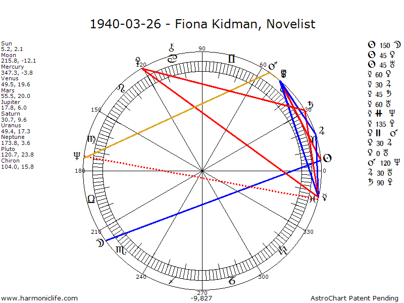 SUN Sesquiquadrate-150 degrees MOON (Fall) with an error of .61 degrees. Aspect strength = 84.63% Energetic and driven; ambitious; possesses qualities that enhance relationships, including loyalty and sensitivity; mutual understanding; strong maternal instinct; domestic; cheerfully serene; enjoys good health; musically inclined; prosperous, especially where a good aspect from Jupiter exists.